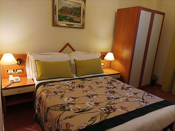 Economy Zimmer, einfache Zimmer mit eigenem Badezimmer mit Dusche oder Badewanne, mittelgroß, aber sehr hell und luftig, klimatisiert. Die Zimmer befinden sich im 4.Stock und sind bis zur Rezeption im dritten Stock mit dem Aufzug und danach zu Fuß erreichbar – kein Gepäckträger.